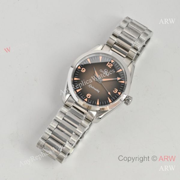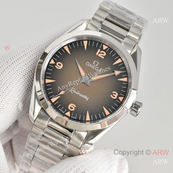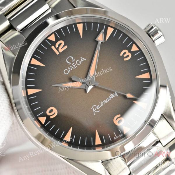 High Quality Replica OMEGA Railmaster Silver Strap Brown Face Dial Silver Bezel Fashion Watch 38mm