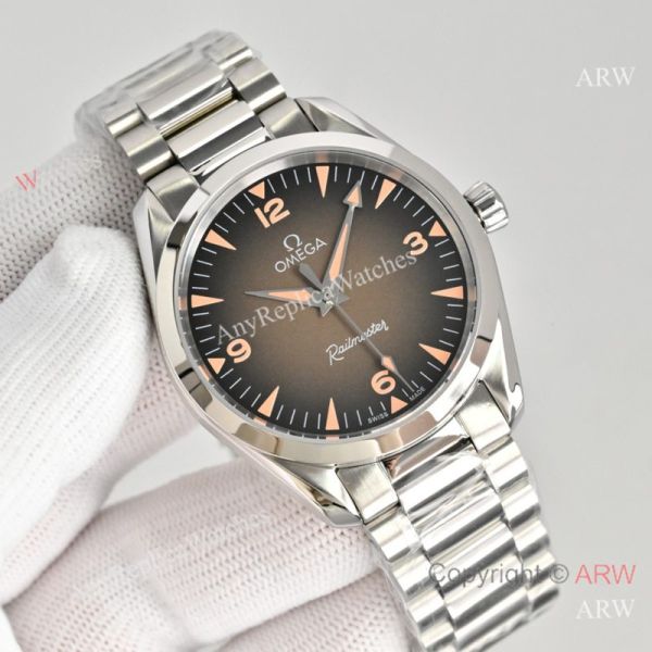 Replica OMEGA Railmaster Silver strap Brown Face Dial Watch Fashion size 38mm -Ceramic Bezel