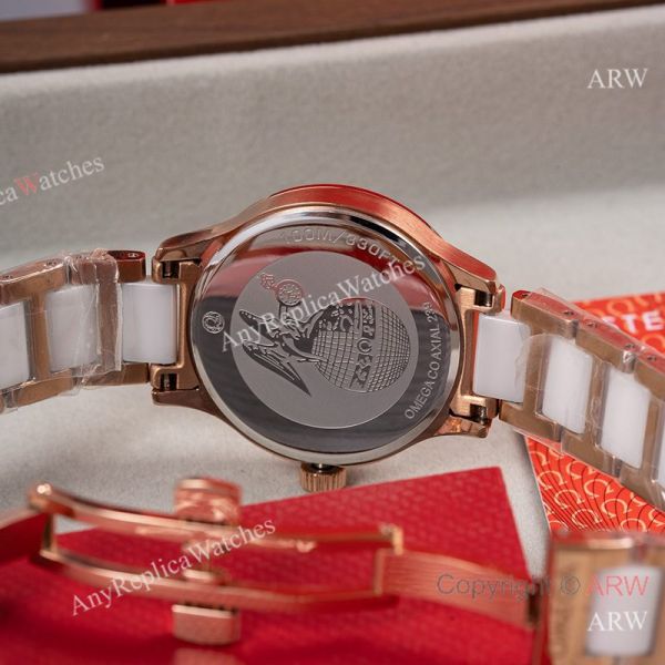 Replica Omega 2-Tone 316 stainless steel Strap White Face Dial Watch Fashion size 32mm -Ceramic Bezel