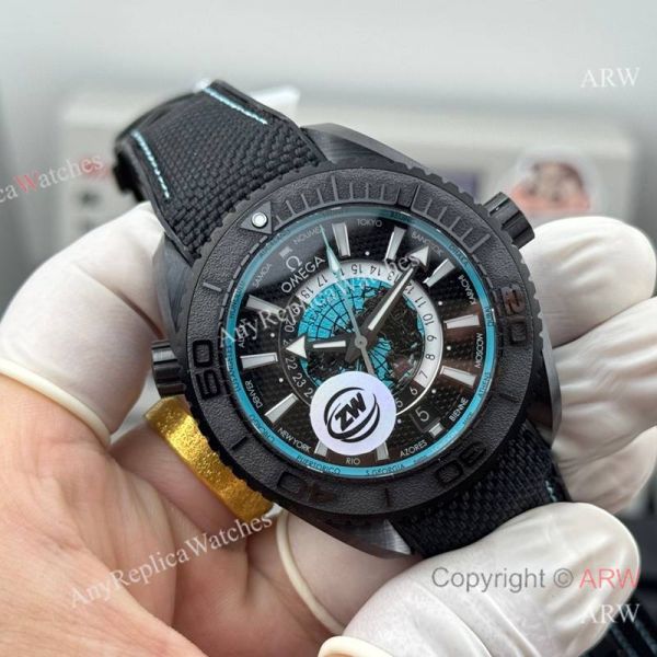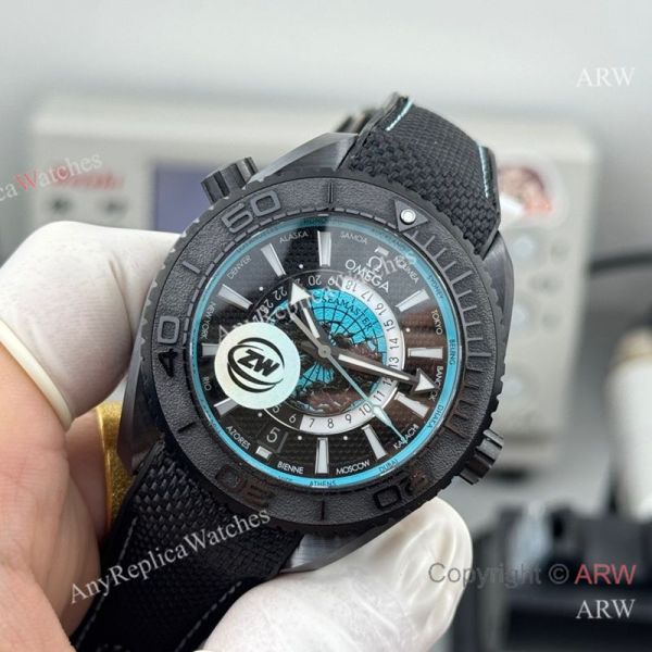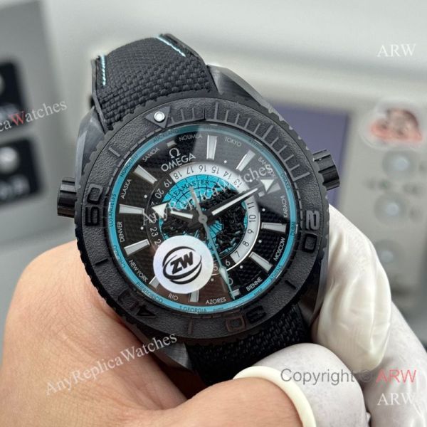 Replica OMEGA Seamaster Black strap Black Face Dial Watch Fashion size 45.5mm -Ceramic Bezel