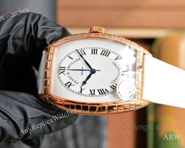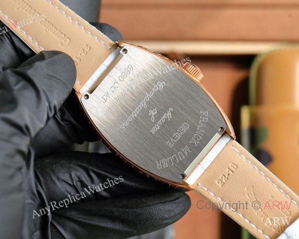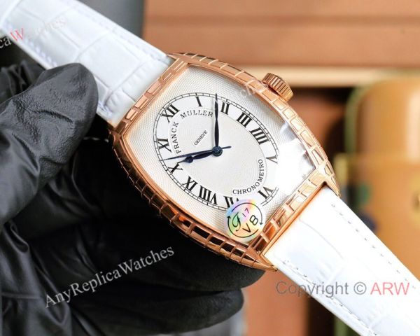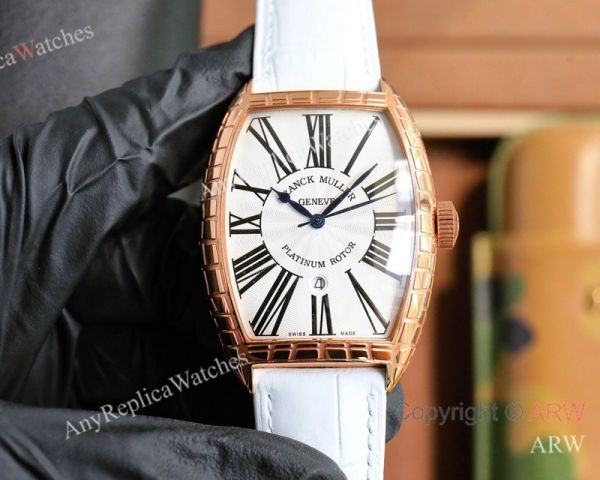 Replica Franck Muller White Leather Strap White Face Dial Gold Bezel Watch Fashion Size 55mm