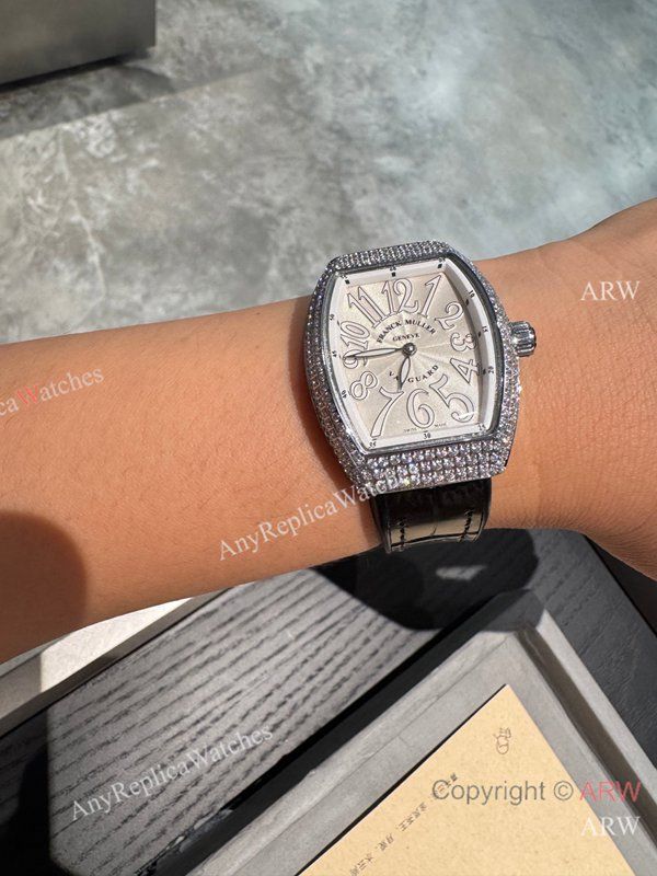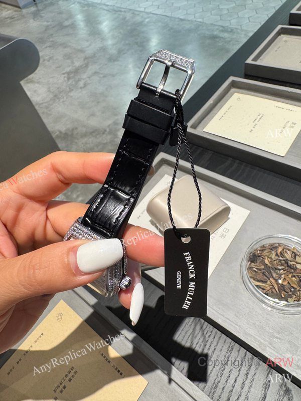 Replica Franck Muller V32 Black Rubber Strap White Face Dial Diamond-Inlaid Silver Bezel Watch Fashion Size 32mm
