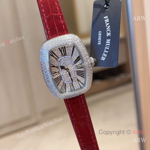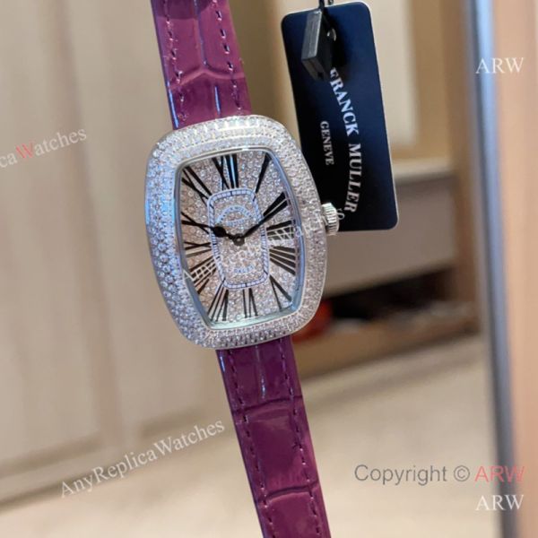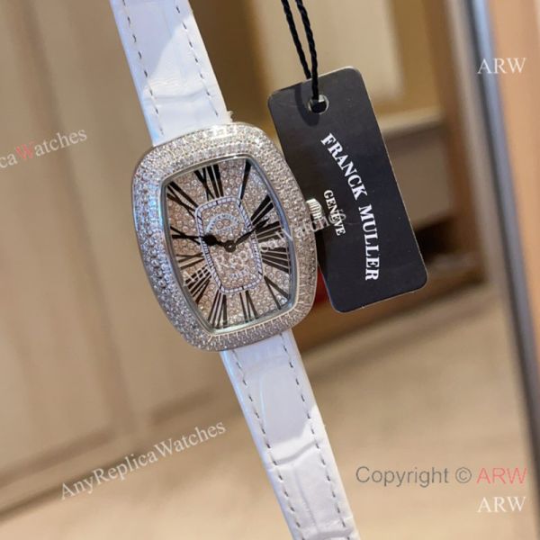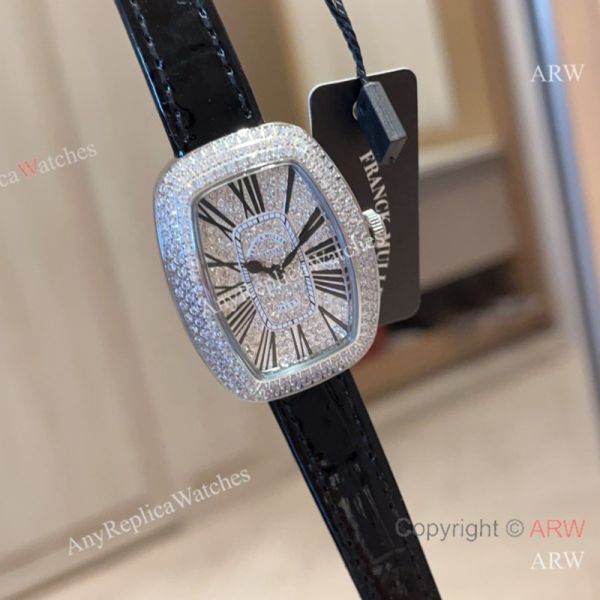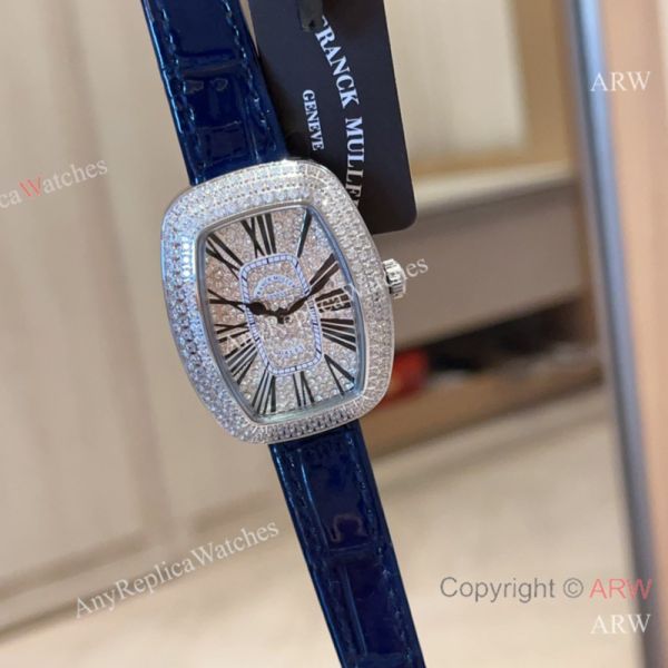 Replica Franck Muller 316 Stainless Steel Different Colors Strap Paved Diamond Face Dial Paved Diamond Bezel Watch Fashion Size 30mm