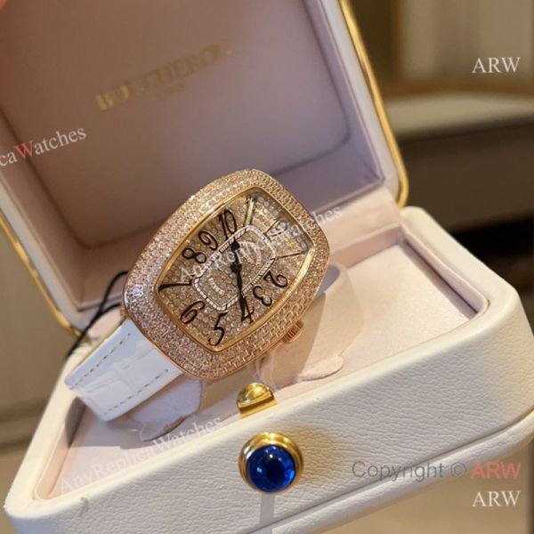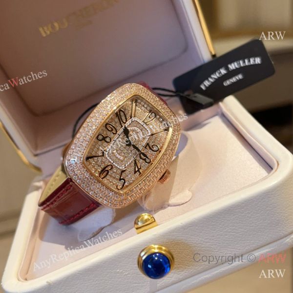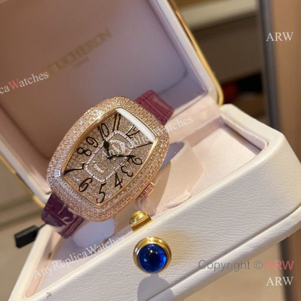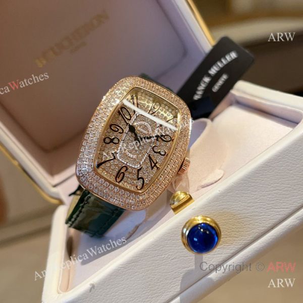 Replica Franck Muller 316 Stainless Steel Different Colors Strap Paved Diamond Face Dial Paved Diamond Bezel Watch Fashion Size 30mm