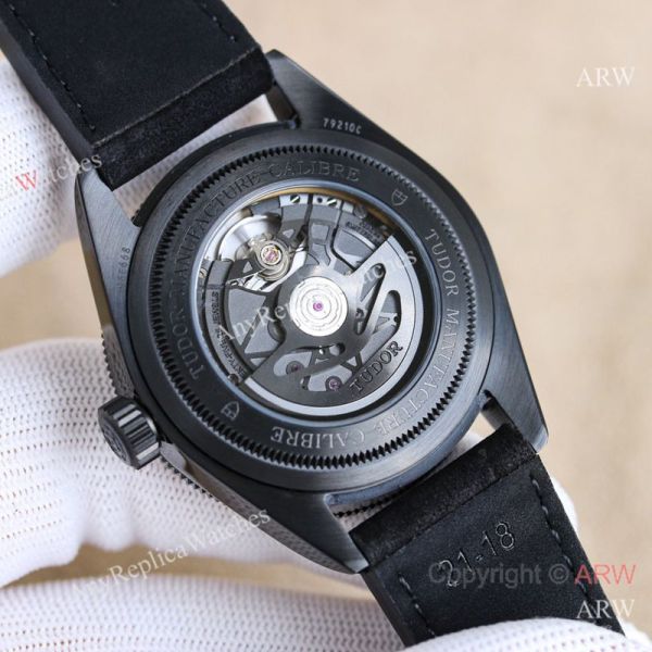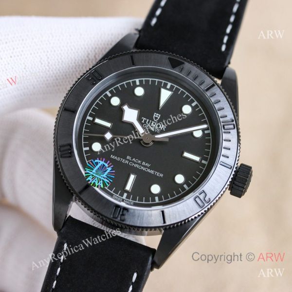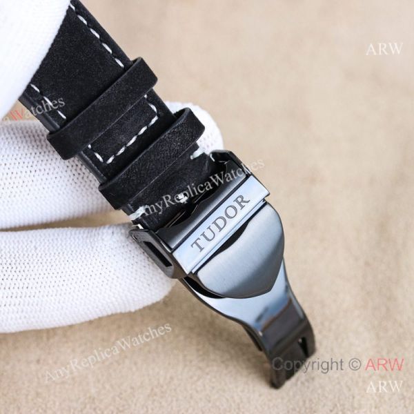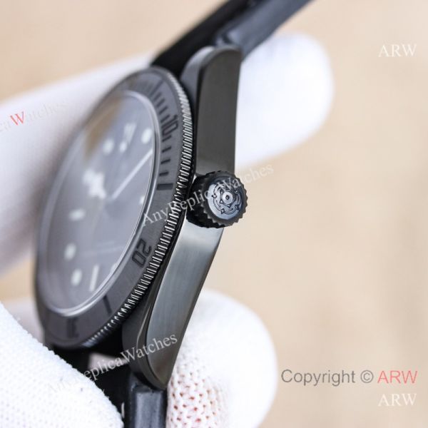Replica TUDOR Black Bay Black Leather Strap Black Face Dial Black Bezel Watch