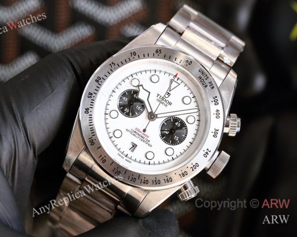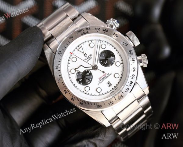 High Quality Replica TUDOR Black Bay Silver Stainless Steel Strap White Face Dial Silver Bezel Watch 42mm