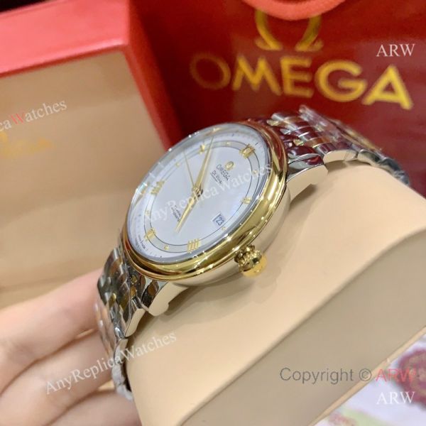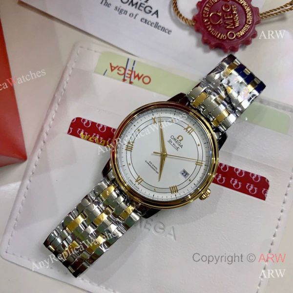 Replica OMEGA De Ville Two-Tone Stainless Steel Strap White Face Dial Gold Case Watch 39.5mm