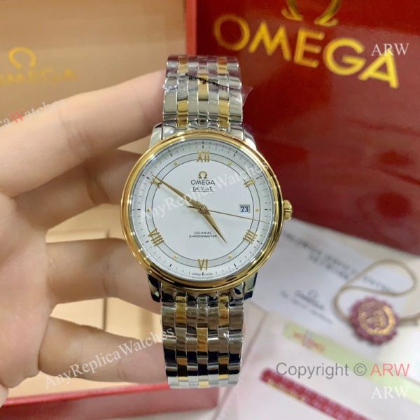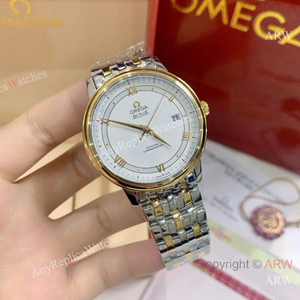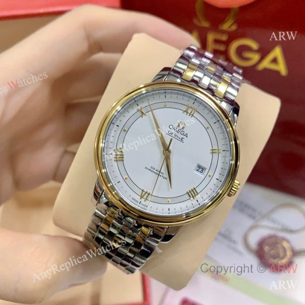 High Quality Replica OMEGA De Ville Two-Tone Stainless Steel Strap White Face Dial Gold Case Watch 39.5mm