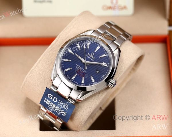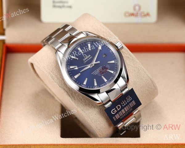 Replica OMEGA Seamaster Aqua Terra Silver 316L Stainless Steel Strap Dark Blue Curved Face Dial Silver Case Watch 41.5mm