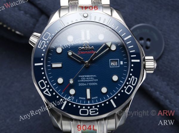 High Quality Replica OMEGA Seamaster 300 Silver 316L Stainless Steel Strap Blue Face Dial Blue Ceramic Bezel Case Watch 42*11mm