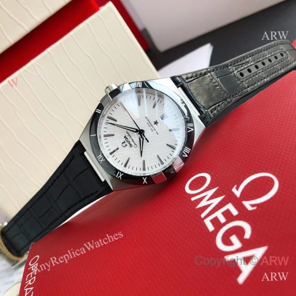 High Quality Replica OMEGA Constellation Black Imported Rubber Strap White Face Dial Black 316L Stainless Steel Case Watch