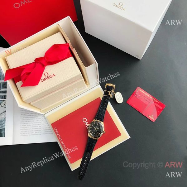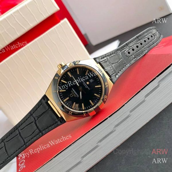 High Quality Replica OMEGA Constellation Black Imported Rubber Strap Black Face Dial 2-Tone 316L Stainless Steel Case Watch