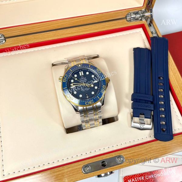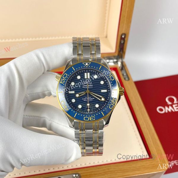 Replica OMEGA Seamaster 300 Different Straps (316 Stainless Steel/Silicone) Blue Wavy Ceramic Face Dial Blue Ceramic Bezel Stainless Steel Case Watch 42mm