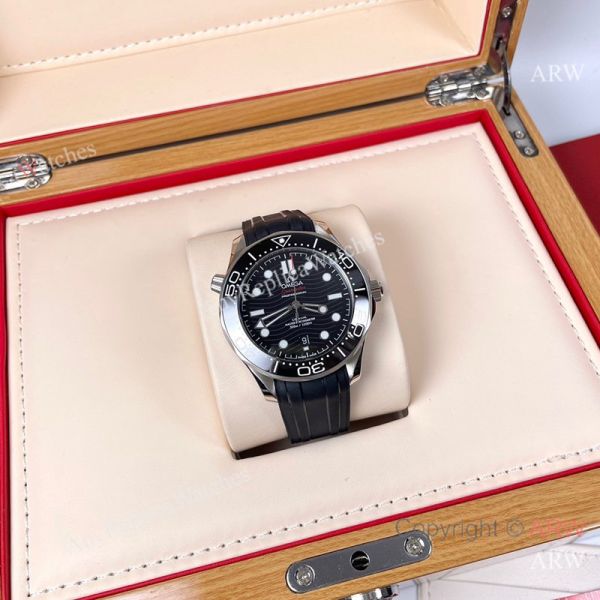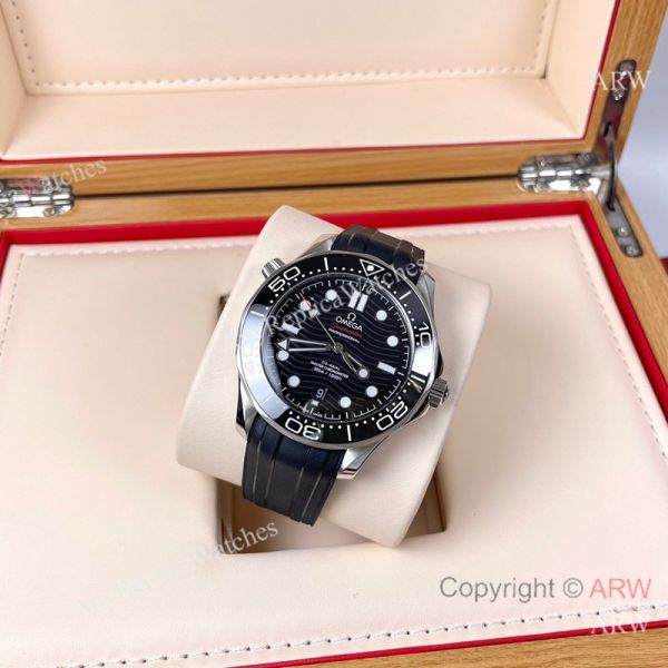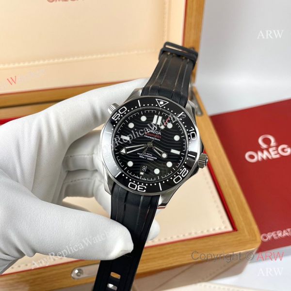 Replica OMEGA Seamaster 300 Different Straps (316 Stainless Steel/Silicone) Black Wavy Ceramic Face Dial Black Ceramic Bezel Stainless Steel Case Watch 42mm