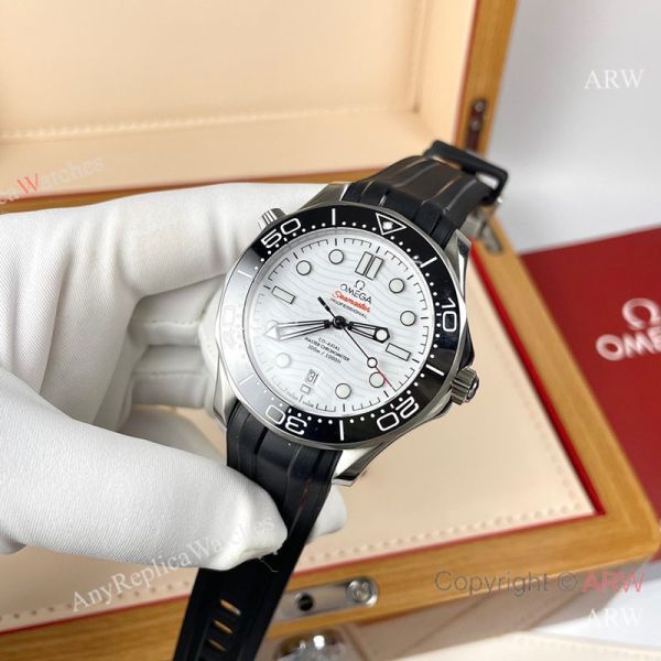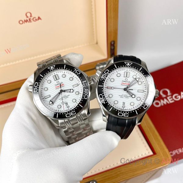 Replica OMEGA Seamaster 300 Different Straps (316 Stainless Steel/Silicone) White Wavy Ceramic Face Dial Black Ceramic Bezel Stainless Steel Case Watch 42mm