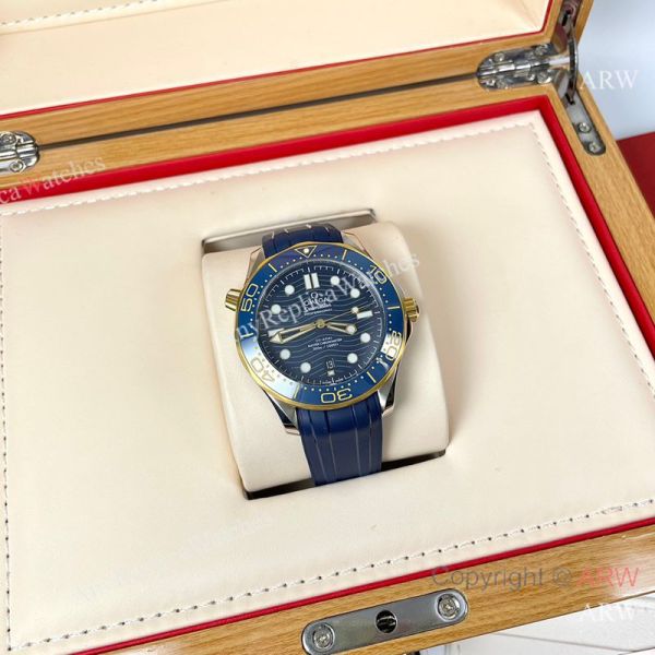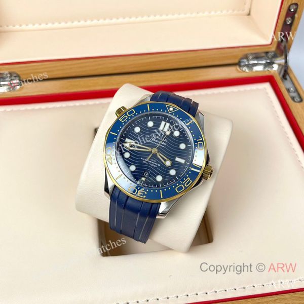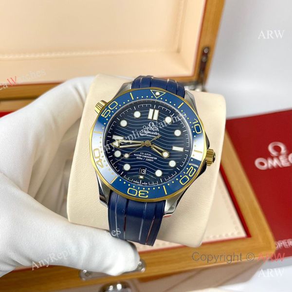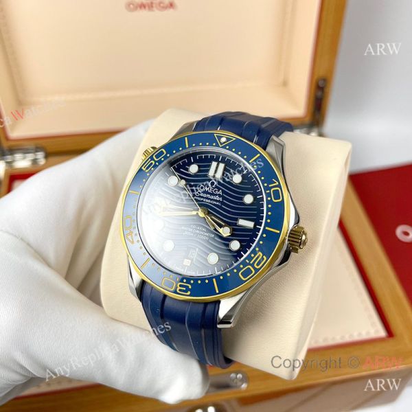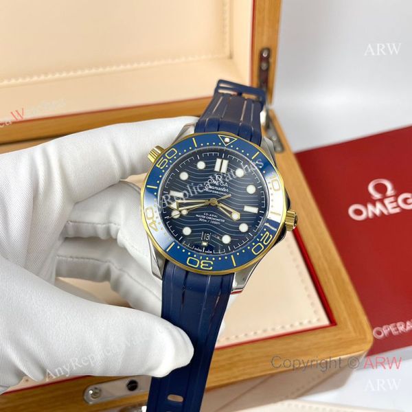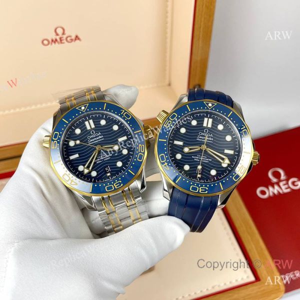 Replica OMEGA Seamaster 300 Different Straps (316 Stainless Steel/Silicone) Blue Wavy Ceramic Face Dial Blue Ceramic Bezel Stainless Steel Case Watch 42mm