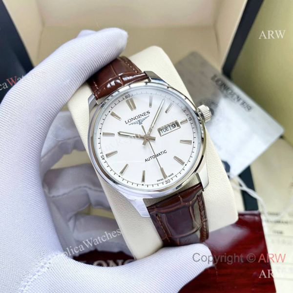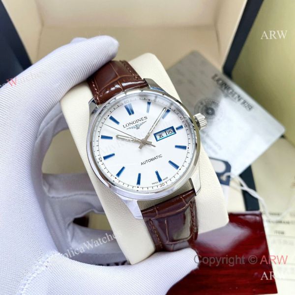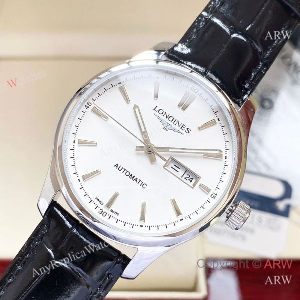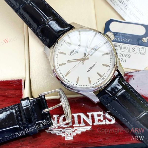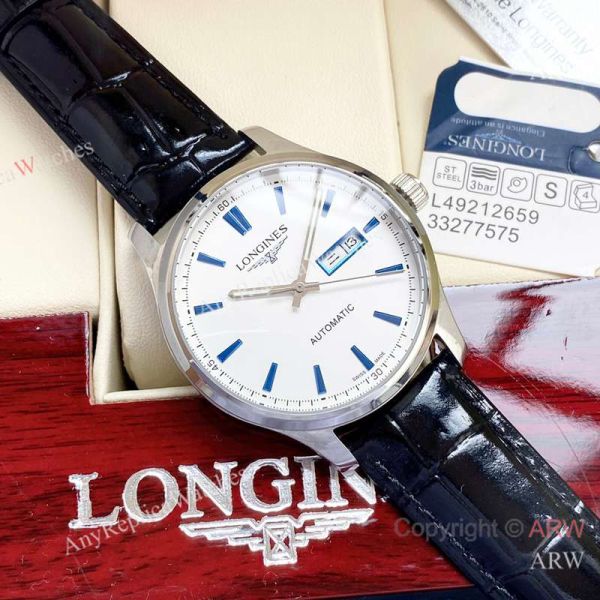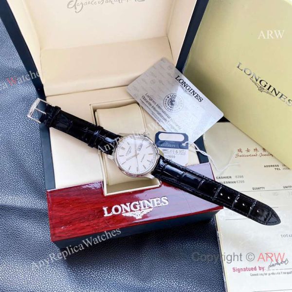 Replica LONGINES Men's Watch Different Colors Imported calfskin Strap White Face Dial Different Colors Case Watch 42mm