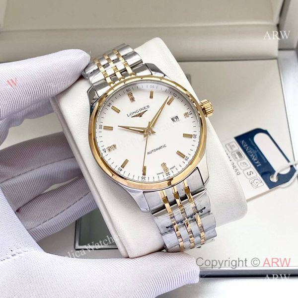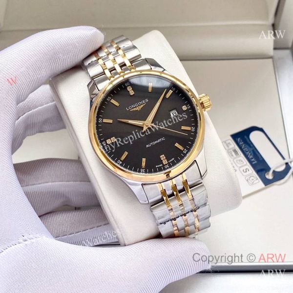 Replica LONGINES Men's Watch Two-Tone 316L Stainless Steel Strap Different Colors Face Dial Different Colors Case Watch 40*12mm