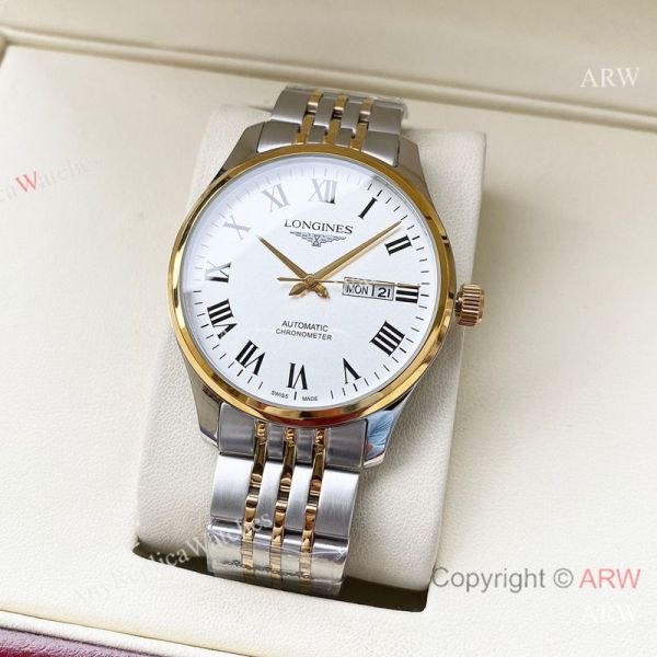 Replica LONGINES Men's Watch Two-Tone 316L Stainless Steel Strap Different Colors Face Dial Different Colors Case Watch 40*12mm