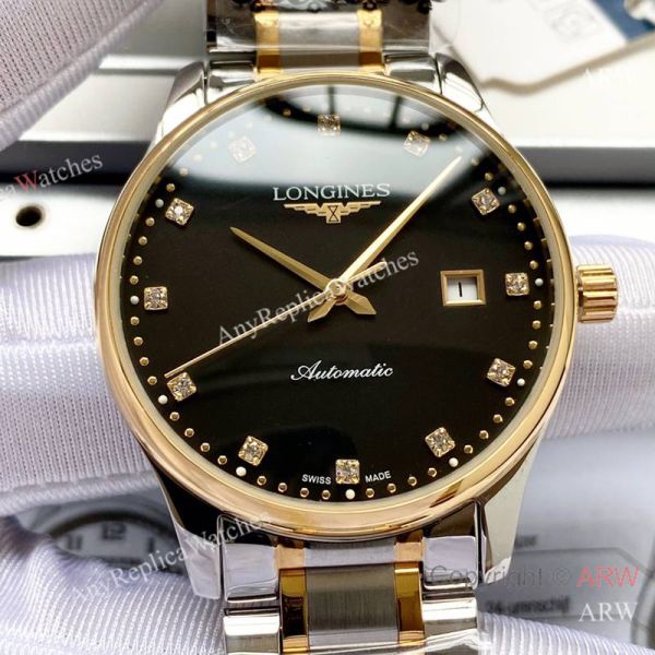 Replica LONGINES Men's Watch Two-Tone 316L Stainless Steel Strap Different Colors Face Dial Gold Case Watch 40*12mm