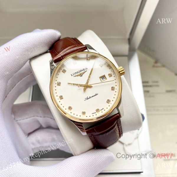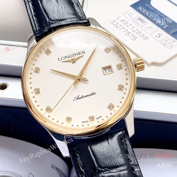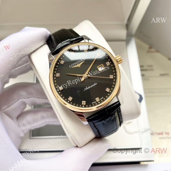 Replica LONGINES Men's Watch Different Colors Genuine Ieather Strap Different Colors Face Dial Gold Case Watch 40*12mm