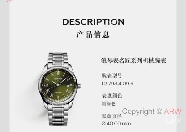 Diameter:Replica LONGINES Master Collection 40mm