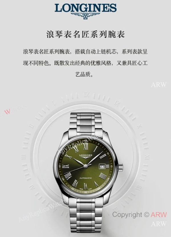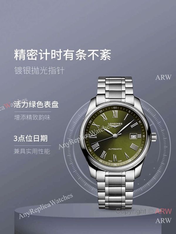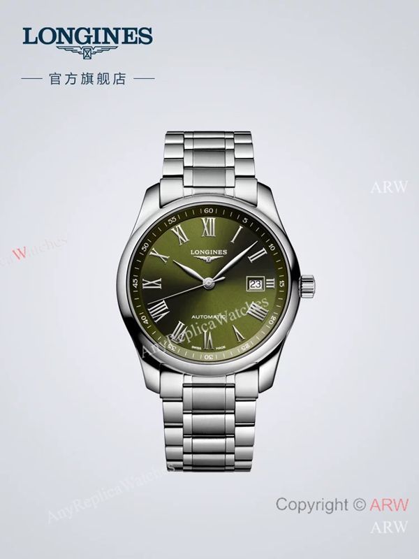 High Quality Replica LONGINES Master Collection Silver 316L Stainless Steel Strap Olive Green Face Dial Silver Case Watch 40mm