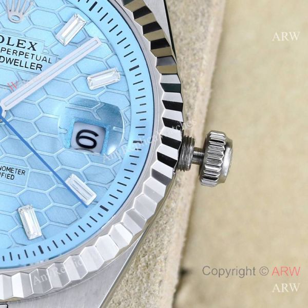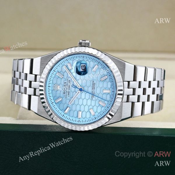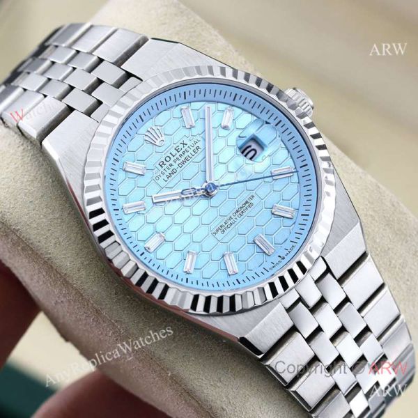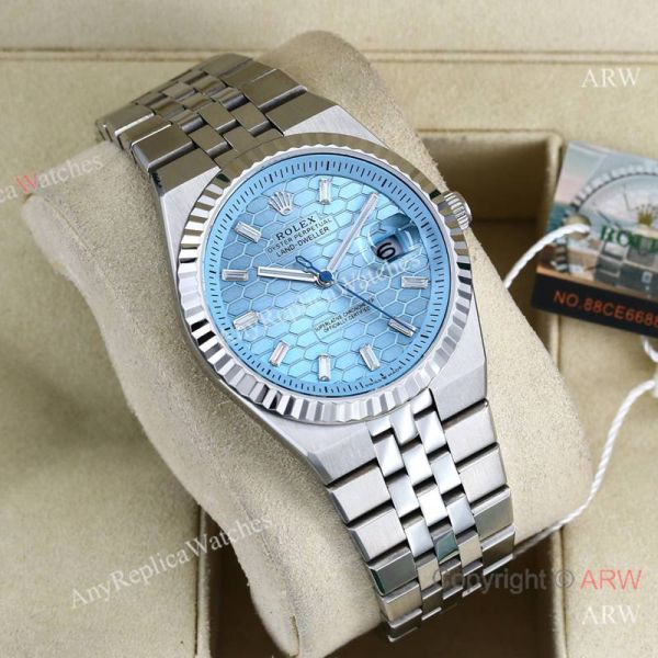 Replica ROLEX Explorer Silver Five-Bead 316L Stainless Steel Strap Honeycomb Light Blue Face Dial Silver Case Watch 40mm