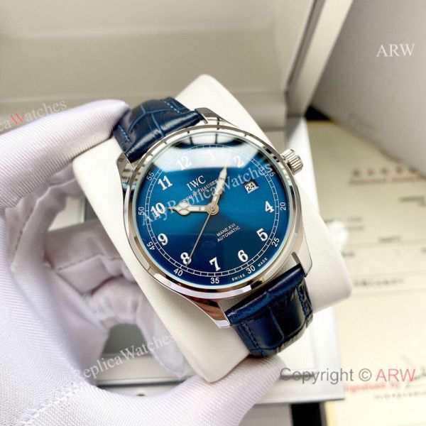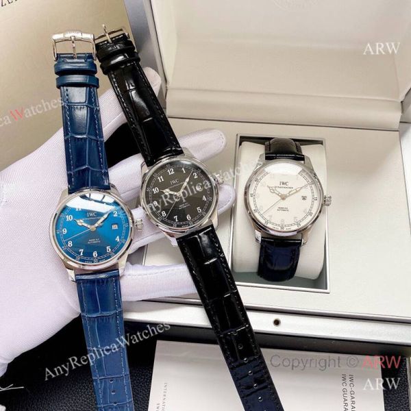 High Quality Replica IWC Men's Watch Different Colors Genuine leather Strap Different Colors Face Dial Silver Stainless Steel Case Watch 40*12mm