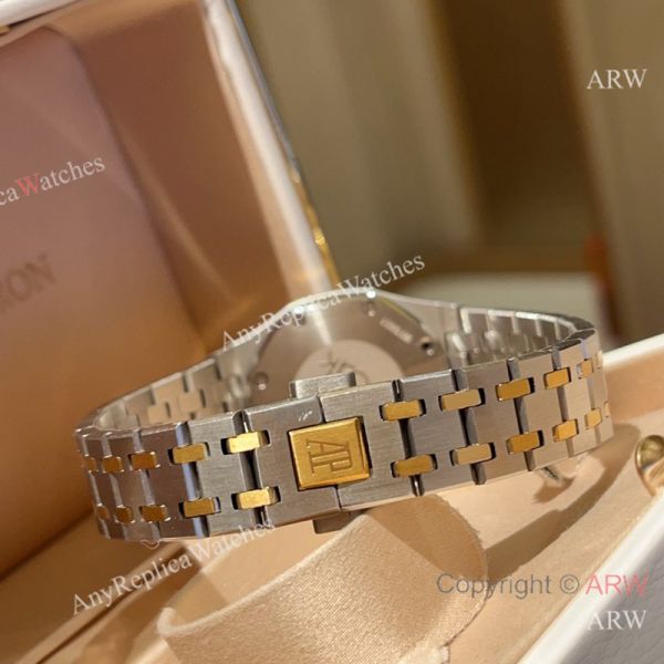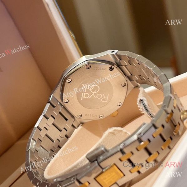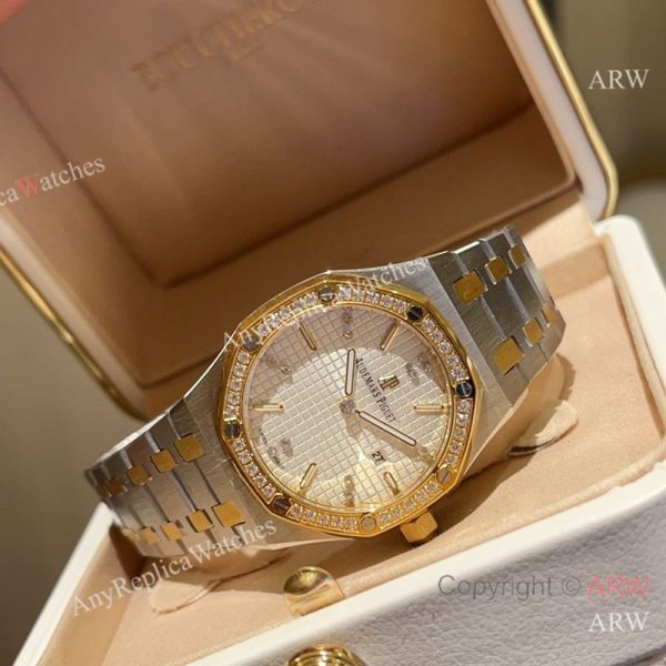 High Quality Replica AUDEMARS PIGUET Royal Oak 2-Tone 316L Stainless Steel Strap White Grande Tapisserie Face Dial Swarovski Crystal Set Stainless Steel Bezel Stainless Steel Case Lady Watch 33mm