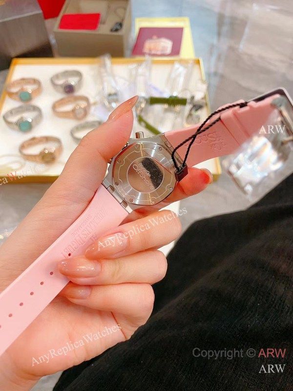 High Quality Replica AUDEMARS PIGUET Royal Oak Pink rubber Strap Pink Face Dial Diamond-Set Octagonal Stainless Steel Bezel Lady Watch 37mm