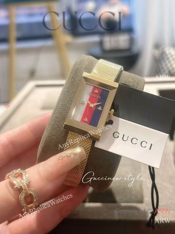 Replica GUCCI 2019 Basel Gold Strap 2-Tone Face Dial Gold Bezel Watch 34*21mm