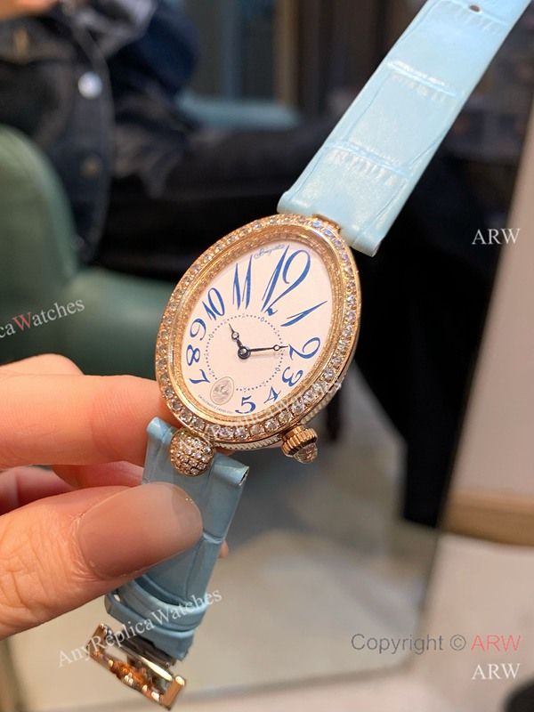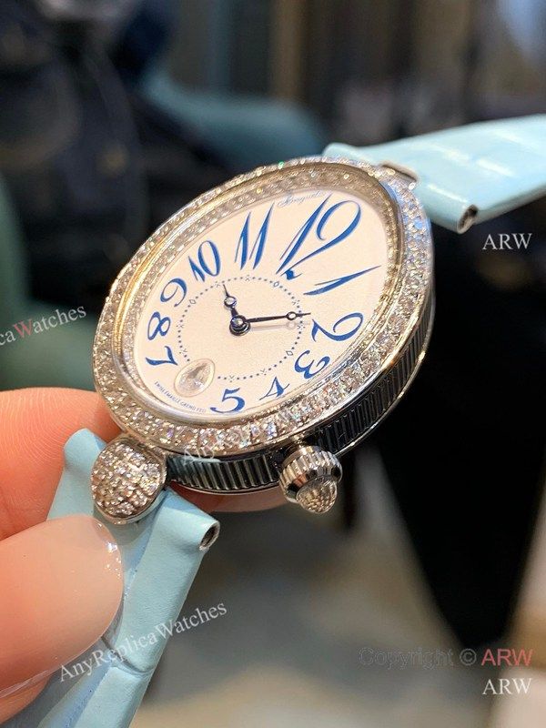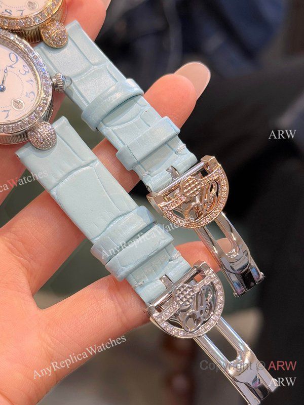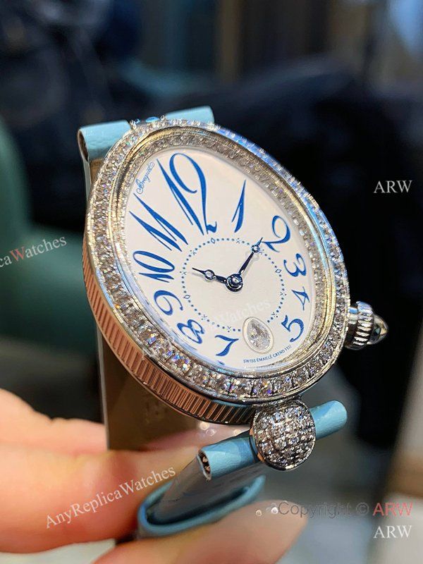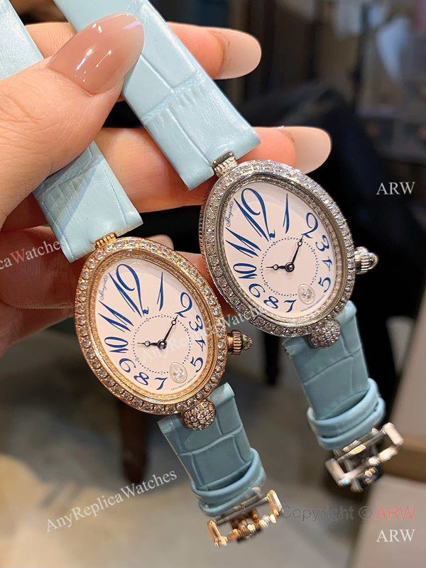 Replica BREGUET Reine De Naples Light Blue Leather Strap White Face Dial Different Colors Diamond Inlaid Case Watch