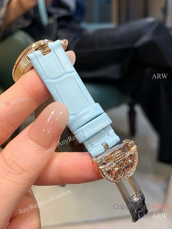 High Quality Replica BREGUET Reine De Naples Light Blue Leather Strap White Face Dial Different Colors Diamond Inlaid Case Watch