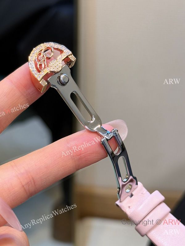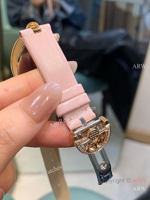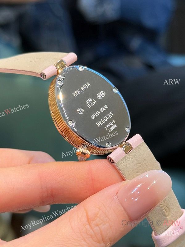 Replica BREGUET Reine De Naples Pink Leather Strap White Face Dial White Diamond Inlaid Case Watch