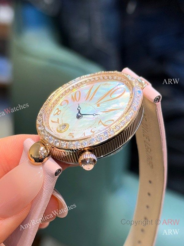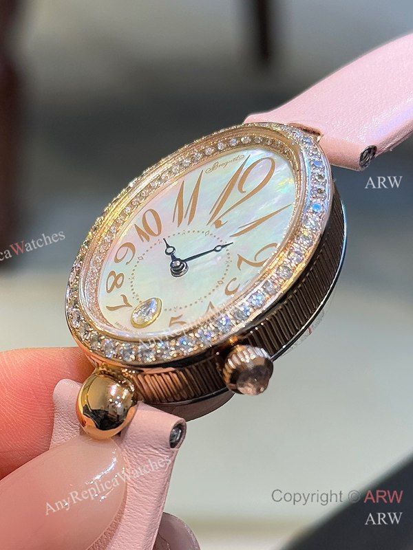High Quality Replica BREGUET Reine De Naples Pink Leather Strap White Face Dial White Diamond Inlaid Case Watch