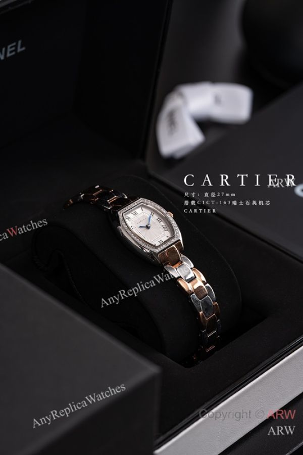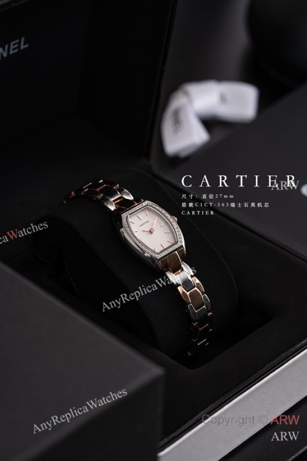 Replica CARTIER Tonneau Collection Different Colors Stainless Steel Bracelet Different Colors Face Dial Stainless Steel Diamond Inlaid Barrel Shaped Integrated Case Watch 27mm
