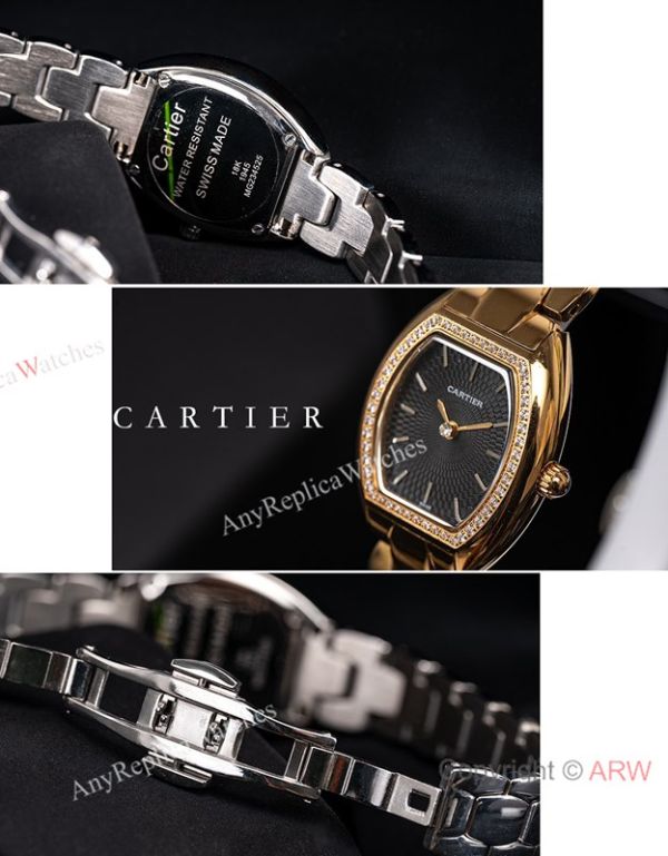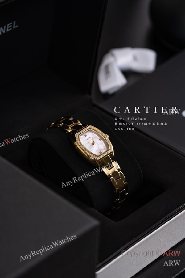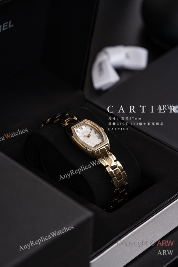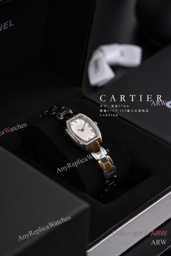 High Quality Replica CARTIER Tonneau Collection Different Colors Stainless Steel Bracelet Different Colors Face Dial Stainless Steel Diamond Inlaid Barrel Shaped Integrated Case Watch 27mm