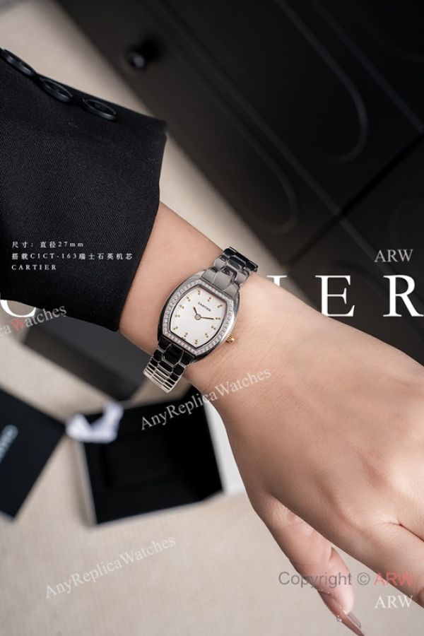 Replica CARTIER Tonneau Collection Different Colors Stainless Steel Bracelet Different Colors Face Dial Stainless Steel Diamond Inlaid Barrel Shaped Integrated Case Watch 27mm