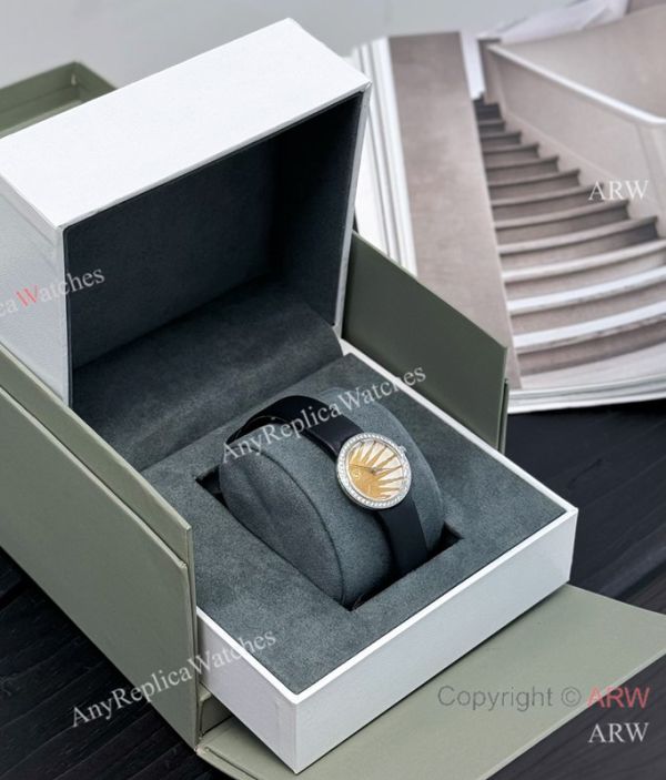 Gold-Carved Sun With Nine Rays On The Dial Shows Exquisite Craftsmanship. Polished Crescent And Three Diamonds On The Case Back Add Elegant Details