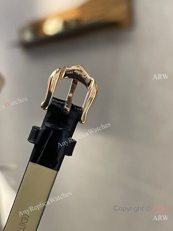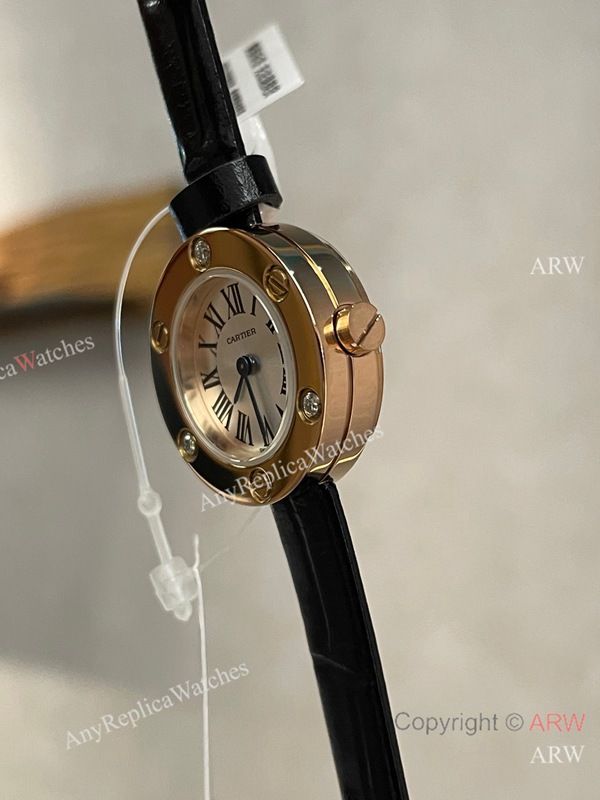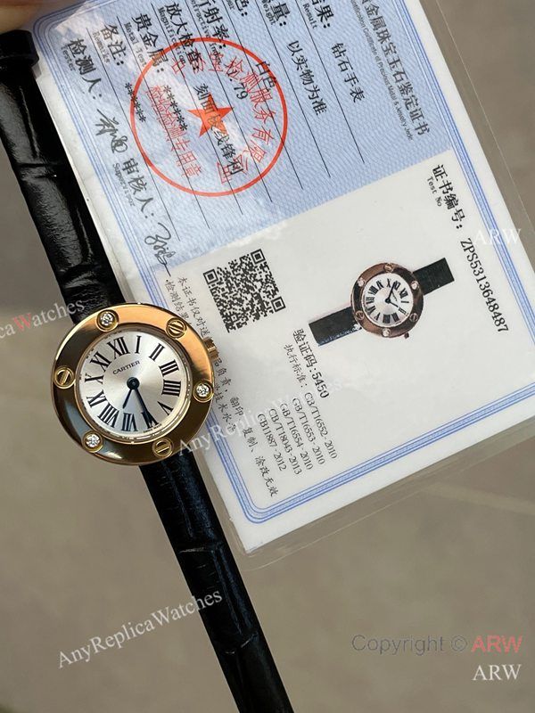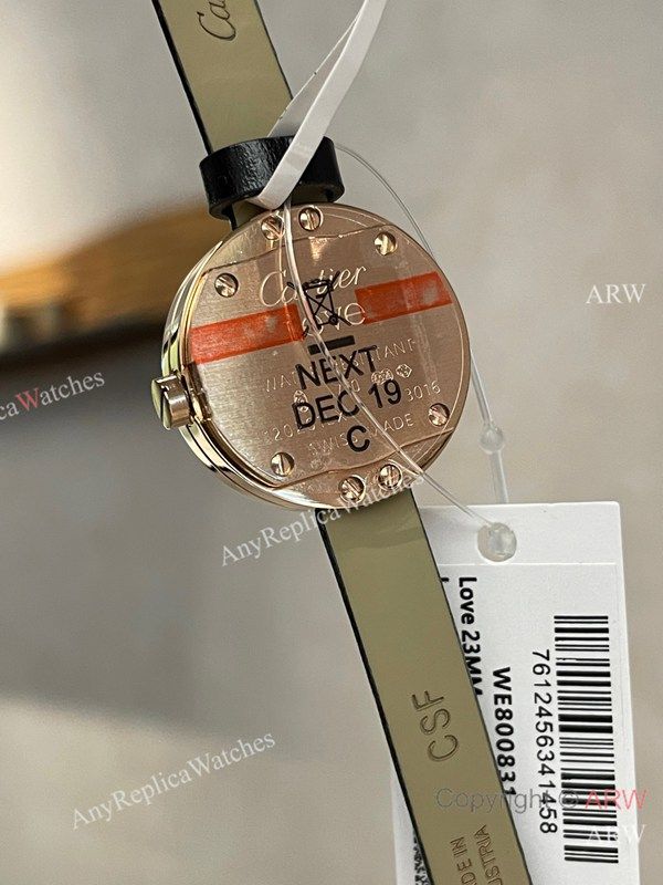 Replica CARTIER Love Collection Black Strap Silver 3 Real Diamonds Inlaid Face Dial Gold-Plated With 3 Real Diamonds Inlaid Case Watch 24mm