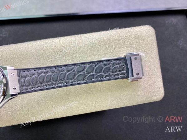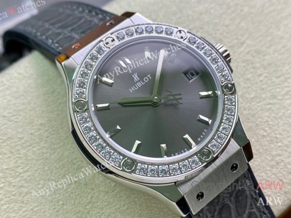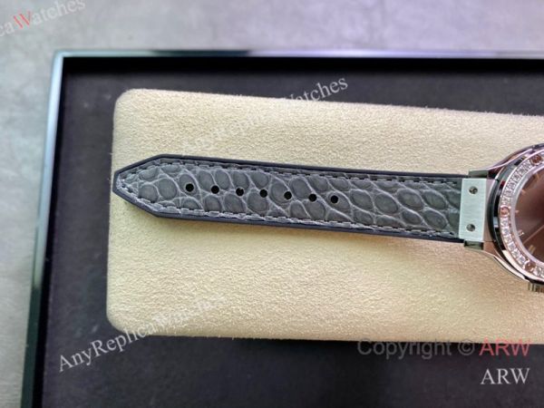 Replica HUBLOT Classic Fusion Gray Crocodile Leather Strap Satin Finish Face Dial Stainless Steel With Diamond-Inlaid Bezel Case Watch 33mm