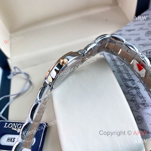 High Quality Replica LONGINES Heart Moon Two-Tone Strap White Face Dial Gold Case Watch 26.5mm