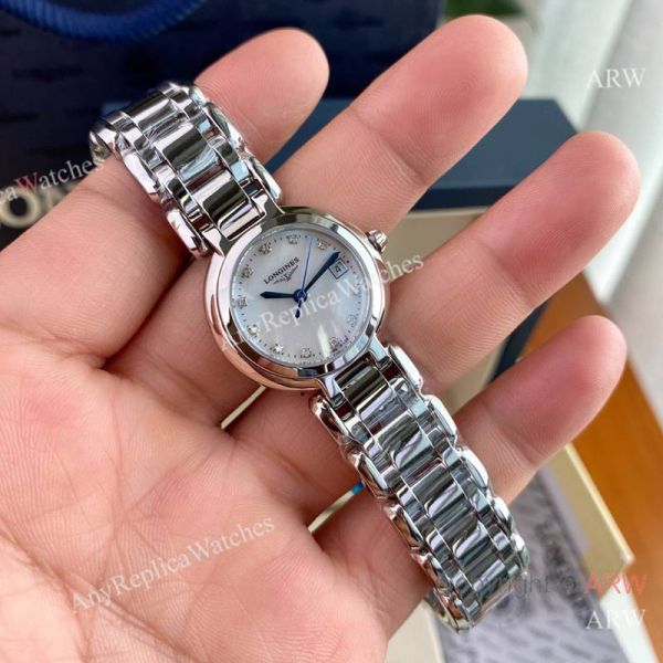 Replica LONGINES Heart Moon Silver Strap White Face Dial Silver Case Watch 26.5mm