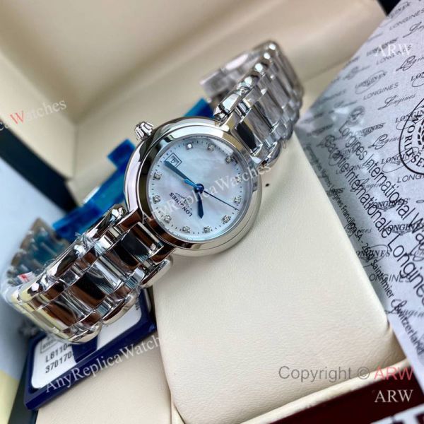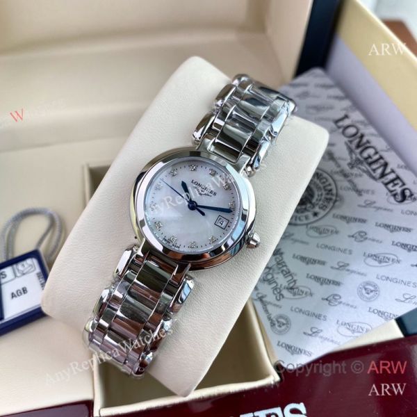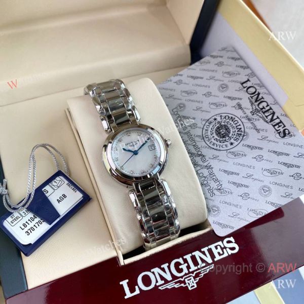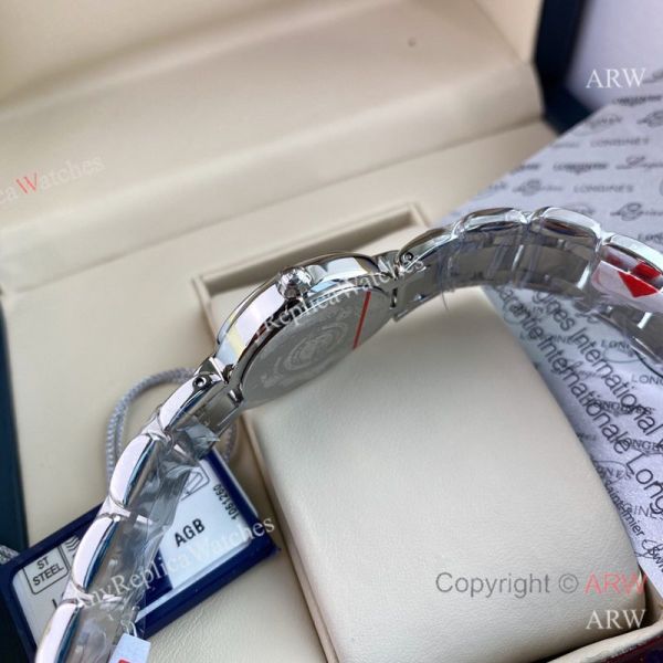 High Quality Replica LONGINES Heart Moon Silver Strap White Face Dial Silver Case Watch 26.5mm