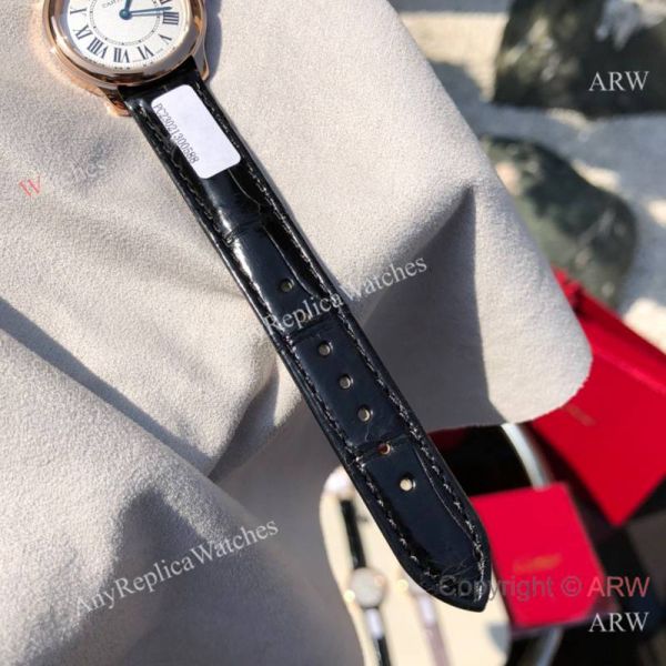 Replica CARTIER RONDE LOUIS Black Imported Crocodile Leather Strap Silver Sandblasted Face Dial Rose Gold Case Watch 29mm