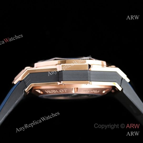 Replica HUBLOT BIG BANG SANG BLEU II Dark Blue Fluororubber Strap Dark Blue Skeletonized Geometric Face Dial Titanium With Diamond-Set Case Watch 45mm