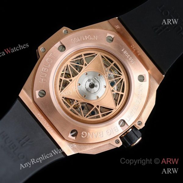 Replica HUBLOT BIG BANG SANG BLEU II Dark Blue Fluororubber Strap Dark Blue Skeletonized Geometric Face Dial Titanium With Diamond-Set Case Watch 45mm