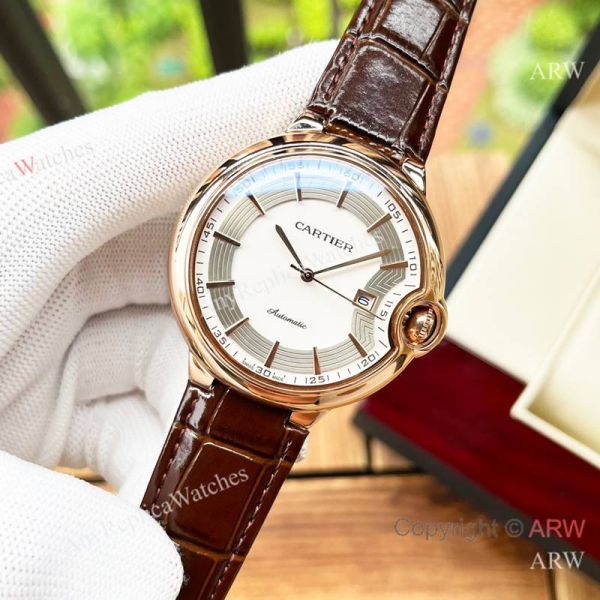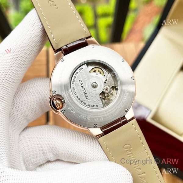 Replica CARTIER Ballon Bleu Different Colors Leather Strap Different Colors Face Dial Different Colors Stainless Steel Case Watch 44×12mm