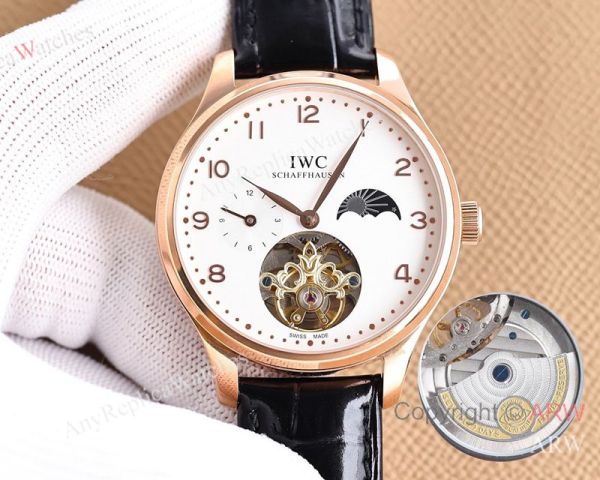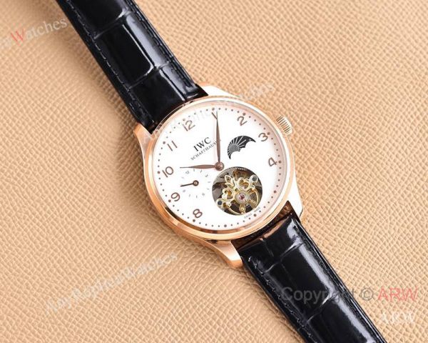 High Quality Replica IWC Different Colors Genuine Leather Strap Different Colors Face Dial Rose Gold Stainless Steel Case Watch 42mm
